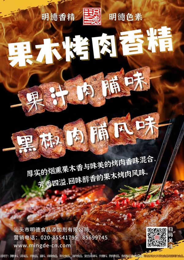 如:果木烤肉香精、炭烤肉香精、燒烤風味香精、煙熏肉香精、孜然肉味香精、黑椒肉脯風味香精等等,諸如此類,各有特色。